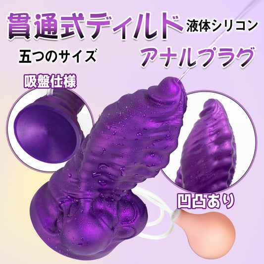TaRiss's ディルド 貫通式ディルド 模擬射精付き 凹凸あり 吸盤付き 液体シリコン パープル