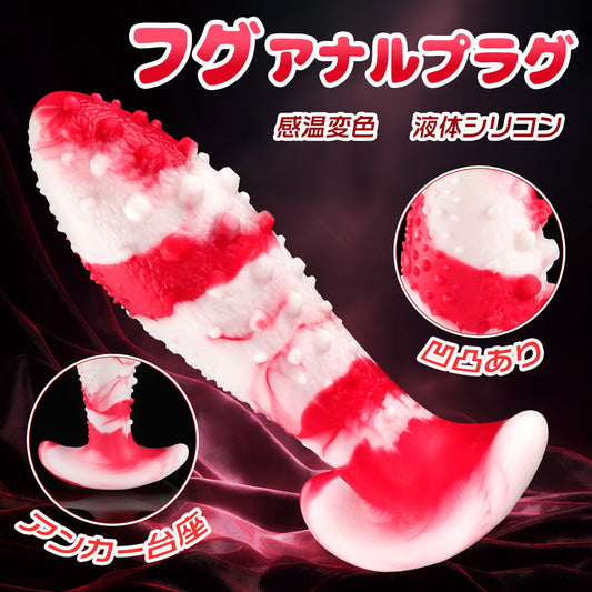 MinYn 感温変色 フグ アナルプラグ アンカー台座 凹凸あり 液体シリコン