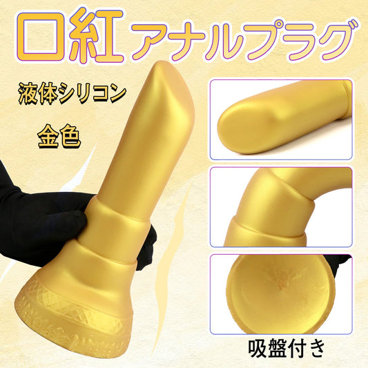 MinYn 口紅 アナルプラグ 金色 吸盤付き 液体シリコン