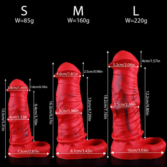 NIGHTLOOM ペニスサック 非貫通式 凹凸あり 馬スタイル 陰茎袖 ペニスリング レッド 液体シリコン