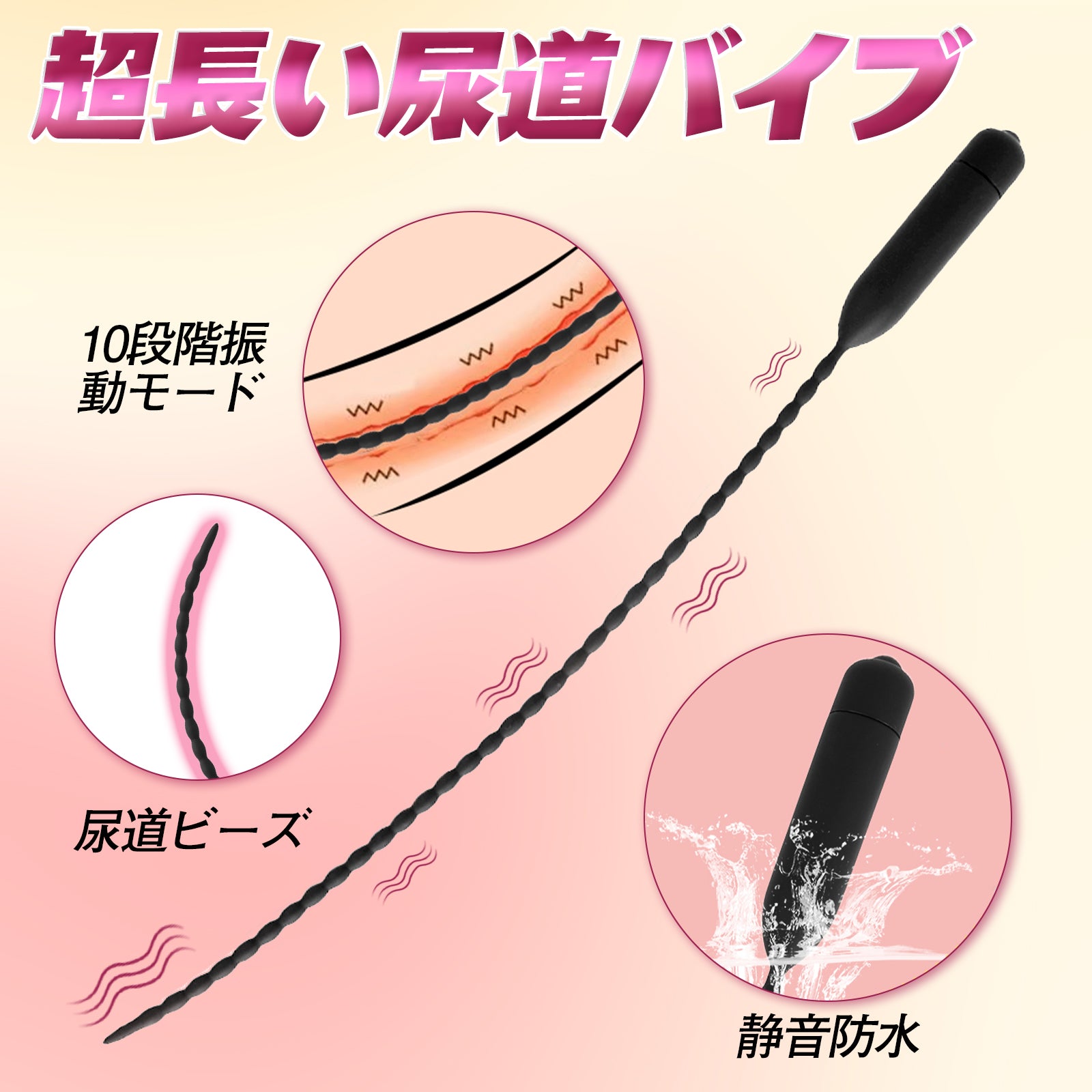 TaRiss's 超長い尿道バイブ 尿道ビーズ 10段階振動モード 静音防水 多種用途 シリコン ブラック