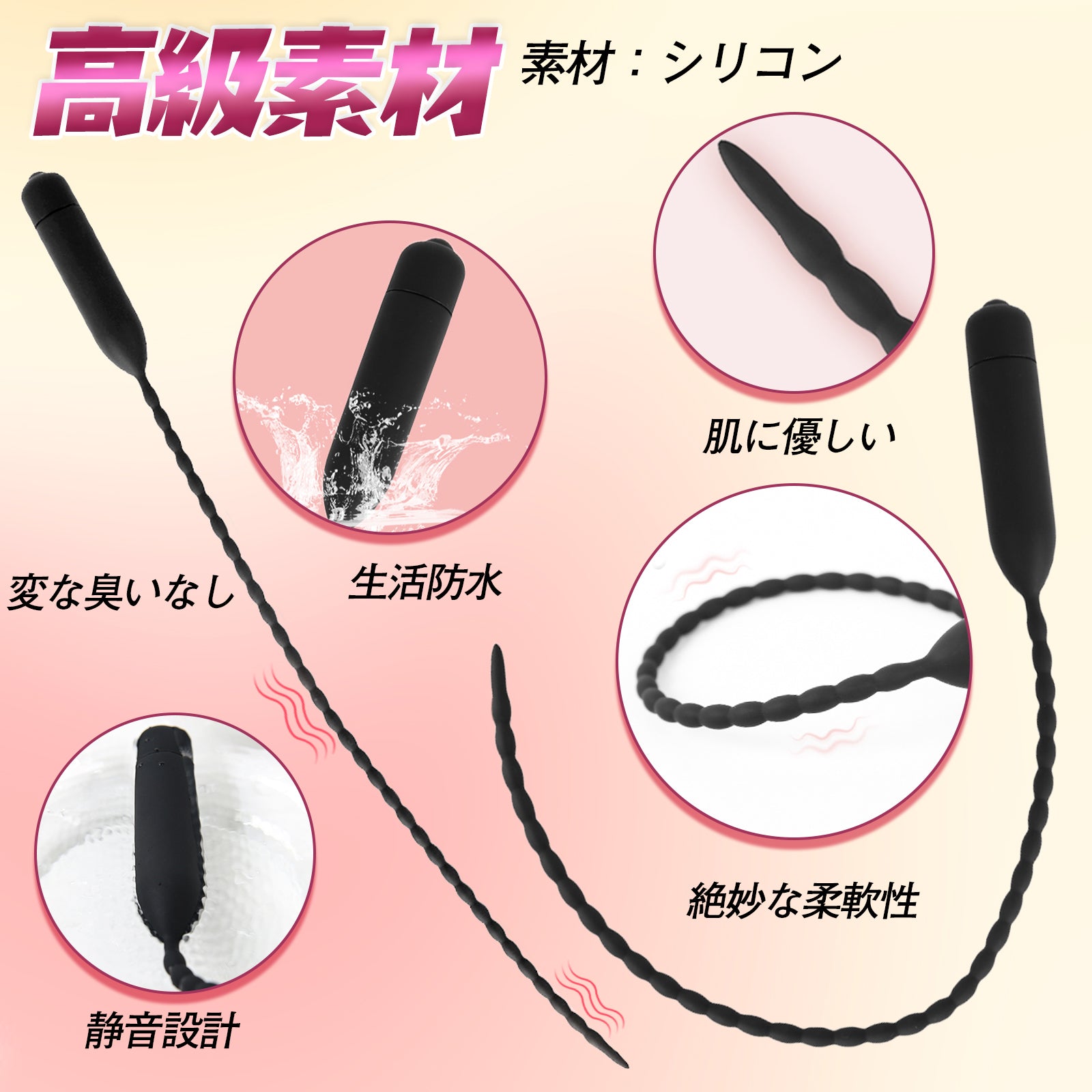 高級素材:絶妙な柔軟性を持つシリコン素材で、自由に曲げられて尿道に変な圧迫感を与えなく初心者でも抵抗感がなく使えます。それに、臭いが一切なくあんしん感満々!