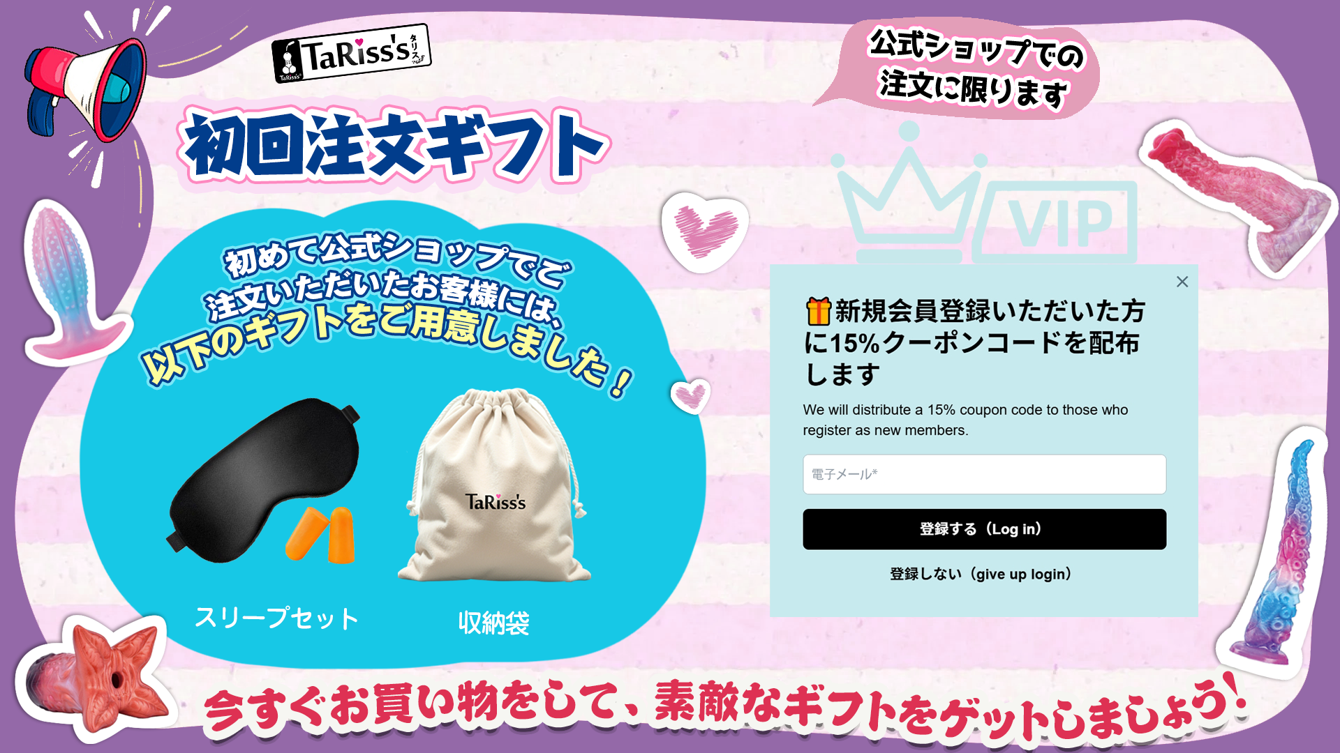 TaRiss'sは2015年に設立され、「お客様にセックスの楽しさと最高な快感が体験させる」という理念を貫いて、様々なニーズに満足できる商品を提供するよう日々頑張っております。
