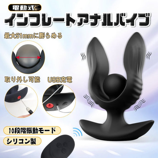 TaRiss's インフレート式アナルプラグ パルス可能 アナル拡張 12種類のパルスモード 最大80mmに膨らめる 分割式 手動 シリコン ブラック