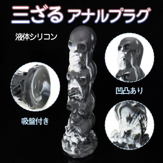 MAPARON 三ざる アナルプラグ 凹凸あり 吸盤付き 液体シリコン