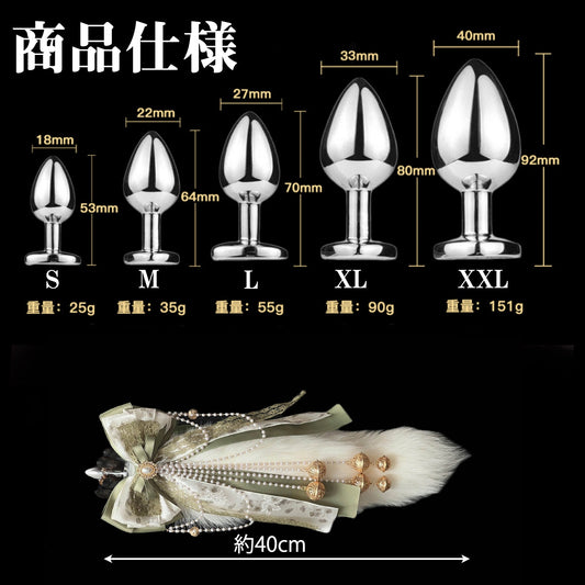 MinYn アナル尻尾 アナルプラグ キツネの毛皮 抹茶色のリボン