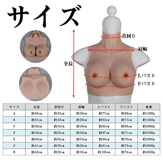 MinYn シリコンバスト 人工乳房 偽乳 男の娘 シリコン製 男性用 A~Hカップ