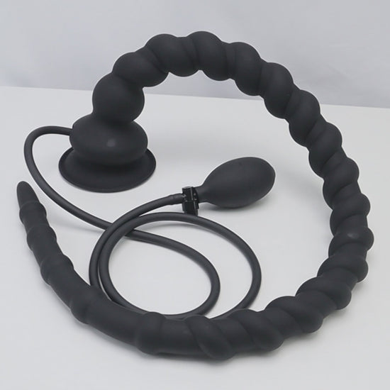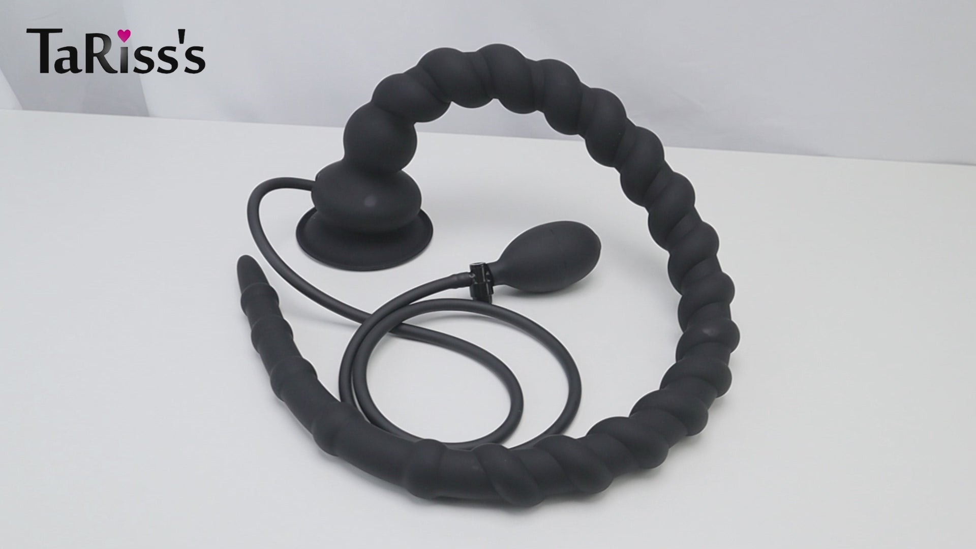 TaRiss's インフレート式アナルプラグ アナル拡張 空気注入式 手動 ネジ山形 吸盤付き シリコン ブラック