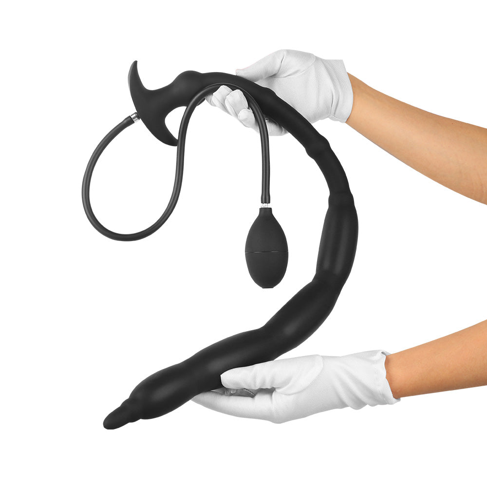 商品仕様:一般状態:アナルプラグの先端直径は約1.8~2.3cm、最大直径は約3.5cmで、可挿入長さは約45cm、台座の幅は約9.5cmです。空気注入した状態:先端直径は最大3.5cmまで膨らめて、可挿入長さも100cmまで伸びられます。空気を注入してアナルプラグを膨らますことによって直径を調整するができて、初心者から超上級者まで対応できる製品です。